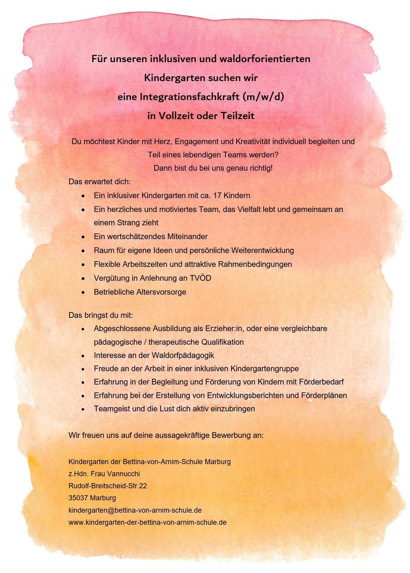 Stellenangebot: Integrationsfachkraft (m/w/d)